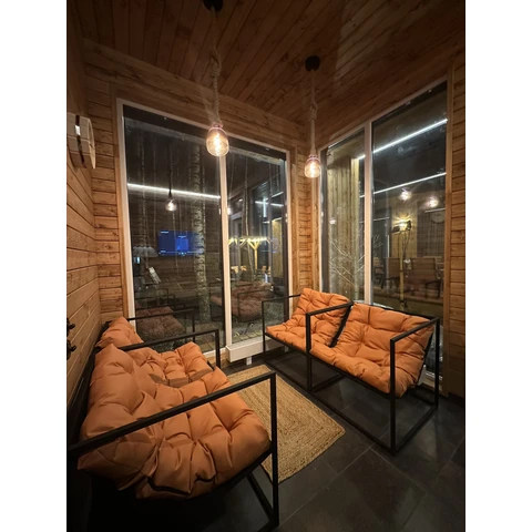 - В бане: парная зона, комната отдыха с телевизором и Яндекс.Станцией, душ.